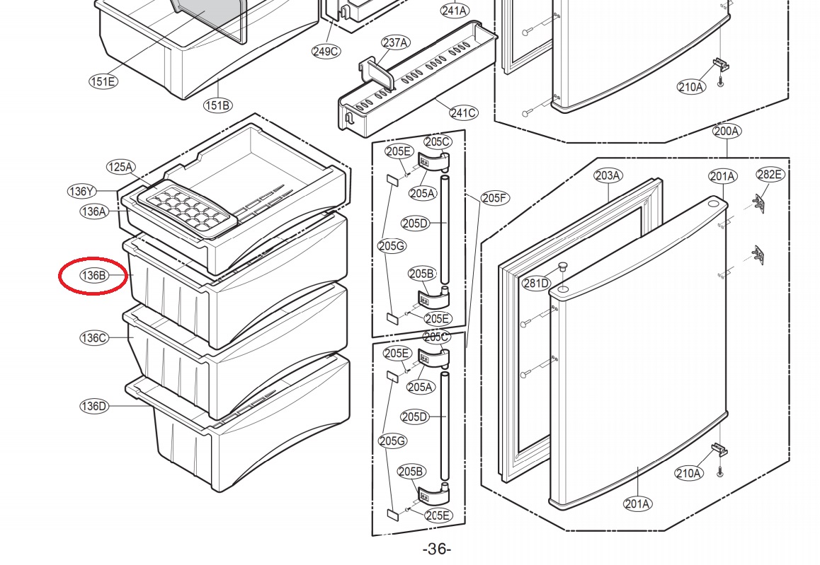 Fiók fagyasztótéri (középső, felső) (eredeti) LG GRB399PQA Hűtőgép alkatrész-1