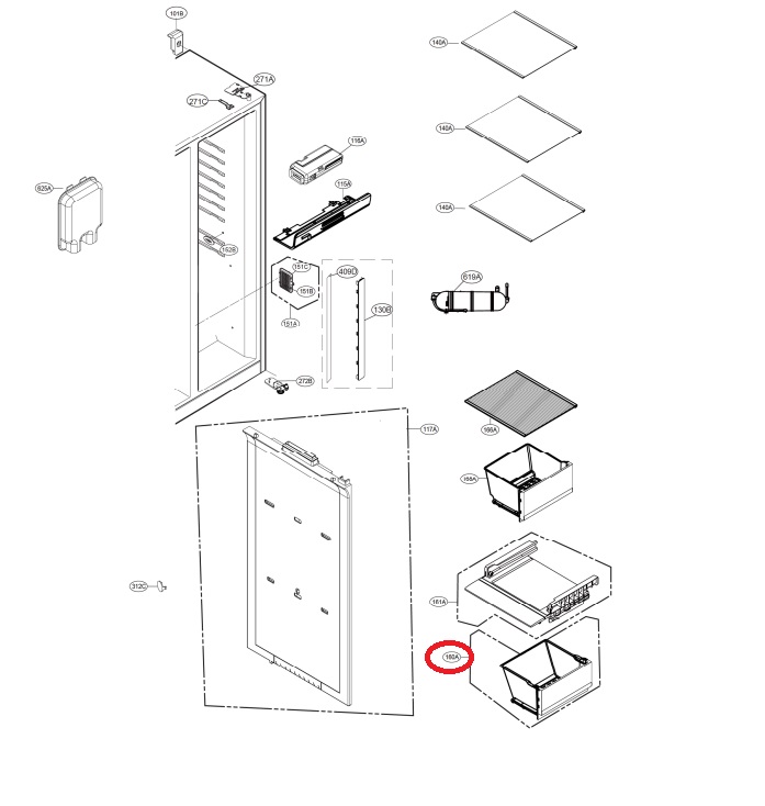 Fiók normáltér alsó (eredeti) LG GSL760PZXV Hűtőgép alkatrész Cikkszám: AJP74894504